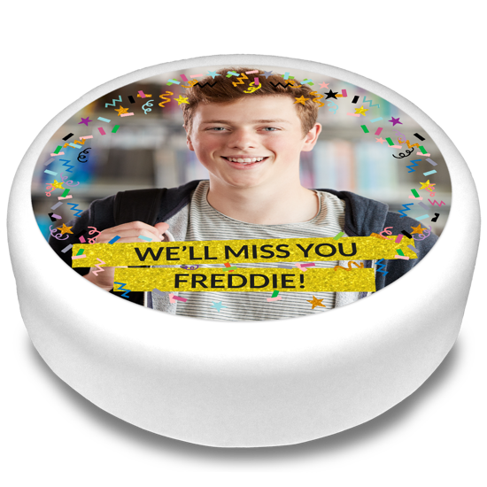 Wish them good luck with our sparkly gold glitter & coloured confetti topper! This celebratory edible topper is a great way to wish them good luck on their next adventure! Personalise your topper in seconds using our easy editor! It's super quick and easy to upload your chosen photo and text for a special touch to your bakes!