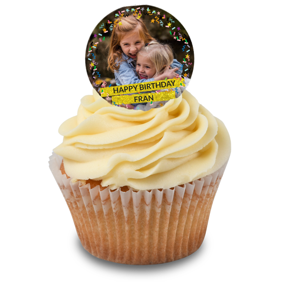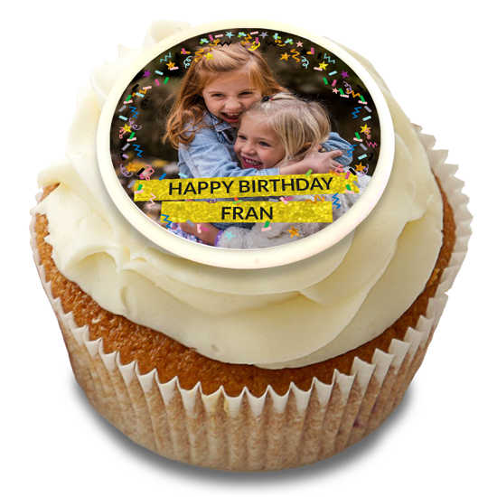 Make her day with our happy birthday sparkly gold glitter & coloured confetti edible toppers! Upload your favourite photo, and add a personal message to create the perfect cake decoration, specially for her!