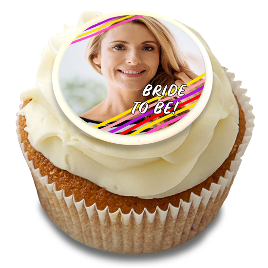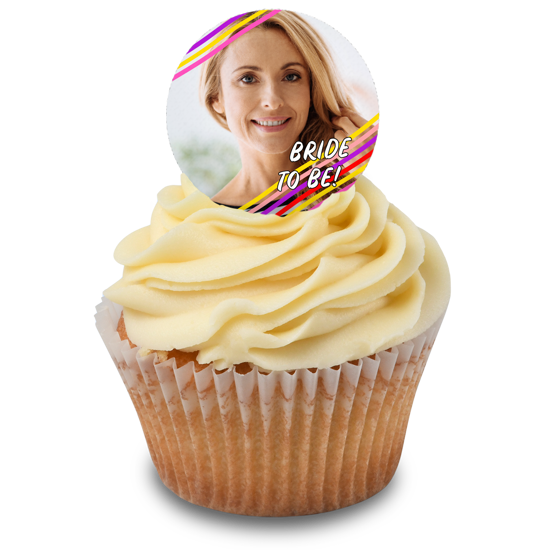 Surprise the bride-to-be on her hen do! Personalise our hen party pink & yellow line border topper with the most fabulous photo of the bride-to-be! These custom edible toppers are the perfect party fuel for a group of girlfriends! Why not make an activity of decorating hen do cupcakes with your best girlfriends? Personalise your toppers with your favourite photos with your best gal pals, our easy editor allows you to upload from your phone, laptop, and social feeds! Finish off your topper with a custom message! The cake topper is made from high-quality, edible icing sheets and is printed with food-grade ink. Simply peel off the backing and place the cake topper on your cake for a custom feel to your celebration!