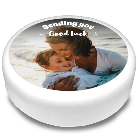 Wish them the best of luck with our good luck white handwritten text topper! This classic design is a great way to wish them good luck on their next adventure! Personalise your topper in seconds using our easy editor! It's super quick and easy to upload your chosen photo and text for a special touch to your bakes!