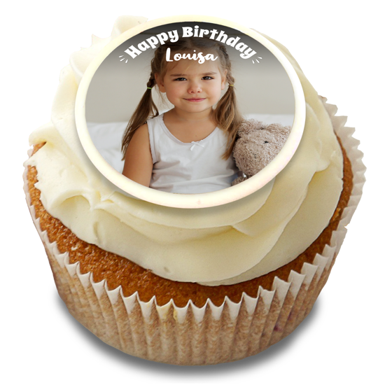 Looking for personalised cake decorations for her birthday party? Our happy birthday white handwritten text topper is the perfect way to make her smile! Upload her favourite photo to this birthday cake topper in seconds! Simply, pick a photo from your phone, laptop or social feeds to add your custom topper and position it with our easy editor! Finish your topper with a custom message!