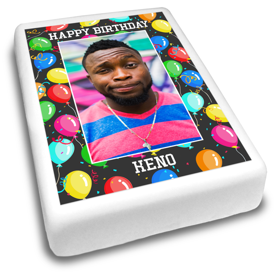 Looking for colourful personalised cake decorations for his birthday celebrations? Our happy birthday dancing colourful balloons border topper is the perfect way to make him smile! Upload his favourite photo to this birthday cake topper and add a custom message in seconds! Simply, pick a photo from your phone, laptop or social feeds to add your custom topper and position it with our easy editor!