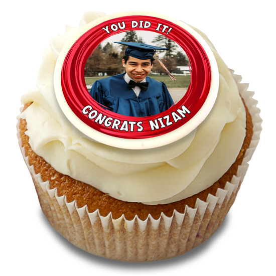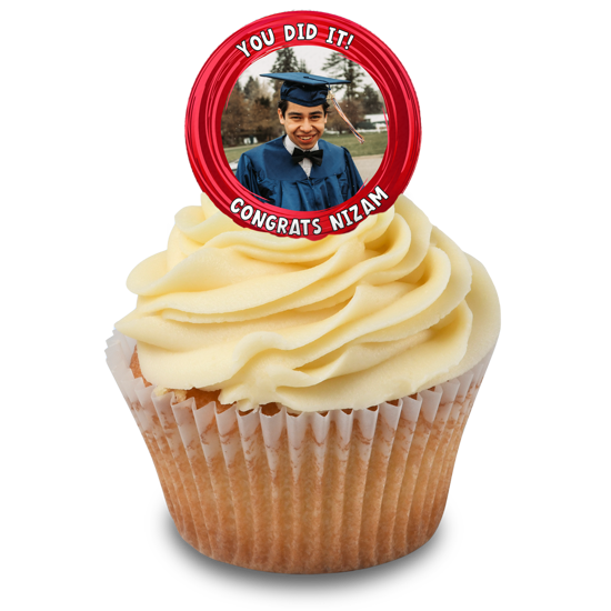 Wow, they did it! Tell them how proud you are with our you did it red swirl border topper! Whether they have recently graduated, passed an exam, driving test or job interview, a customised edible cake topper is the best way to congratulate a special person in your life! Personalise your custom cake topper with your chosen photo using our easy editor!