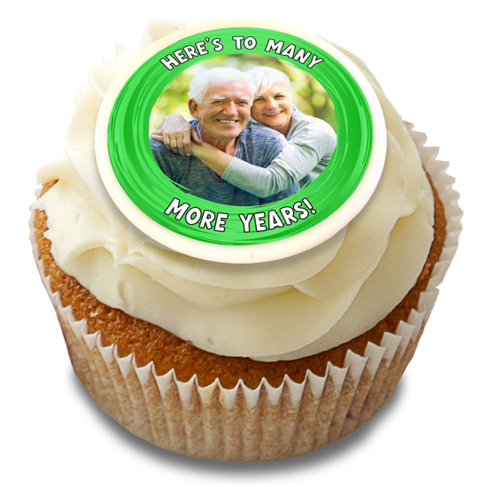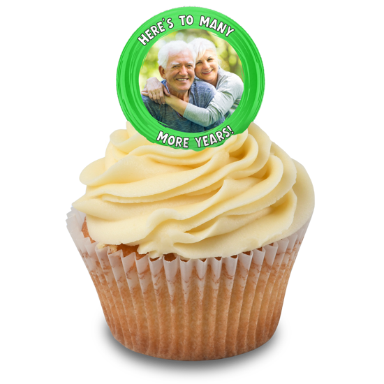 Anniversary green swirl border photo upload Edible Cupcake Topper