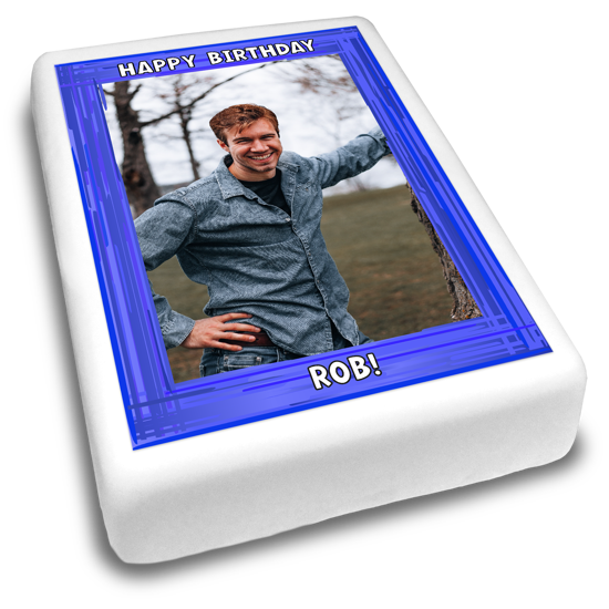 Looking for a colourful way to make his birthday special? Our happy birthday dark blue swirl border topper is the perfect way to make her smile! Customise this birthday cake topper with your chosen photo! Pick a photo from your phone, laptop or social feeds to add your custom topper and position it with our easy editor! Finish off your topper with a custom message!