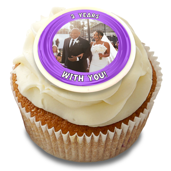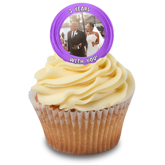 Anniversary purple swirl border photo upload Edible Cupcake Topper