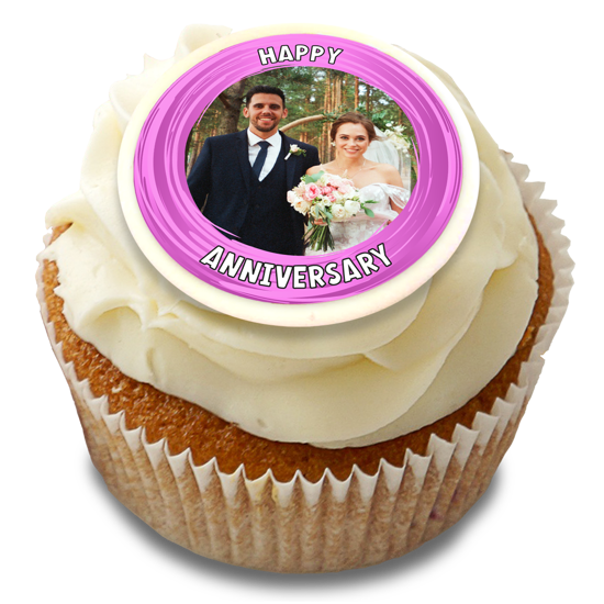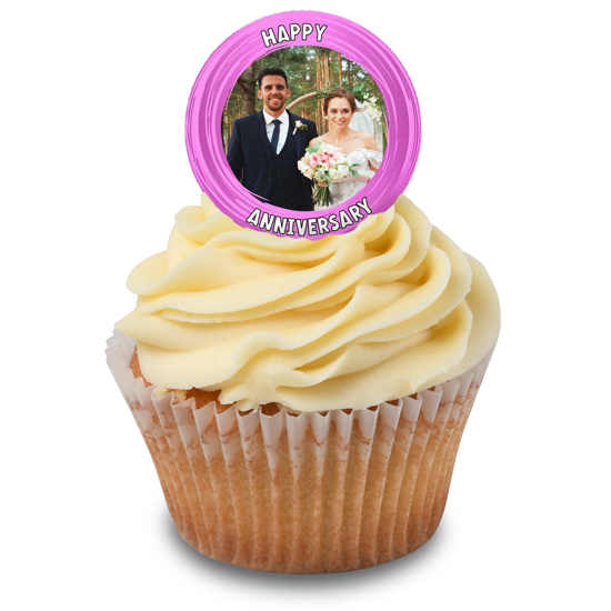 Anniversary pink swirl border photo upload Edible Cupcake Topper