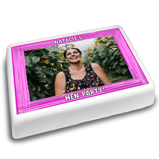Hen do pink swirl border photo upload Sponge Cake Topper