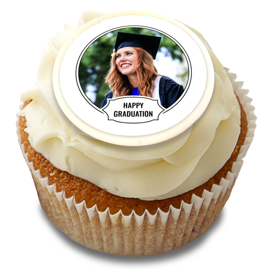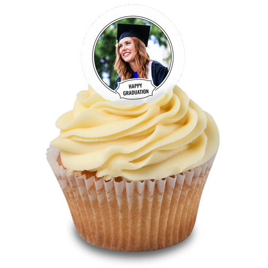 Classic graduation white border photo upload Edible Cupcake Topper