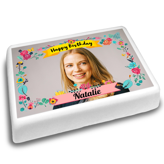Simply upload your photo to this happy birthday pretty colourful flowers border topper and easily personalise the text to make it read whatever you like using our easy editor. Perfect for a special birthday!