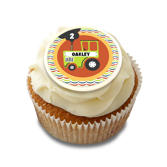 Birthday colourful orange retro farm tractor for boys custom text Edible Cupcake Topper