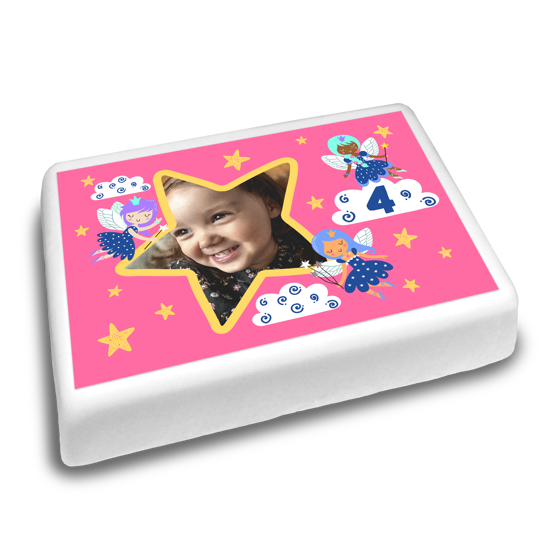 Birthday fairy friends star frame for girls photo upload Sponge Cake Topper