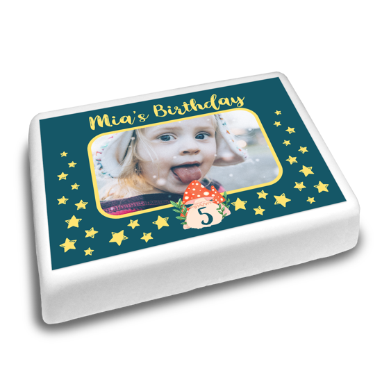 Throwing a fairy-themed birthday party? Our birthday magical fairy toadstool frame topper is the perfect finishing touch to a fairytale birthday cake! Customise this illustrated topper by uploading a photo and adding an age and name using our handy topper editor.