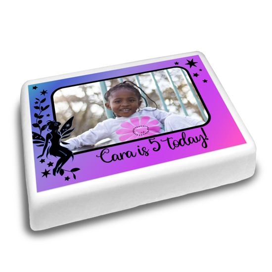 Throwing a fairy-themed birthday party? Our birthday magical fairy pink and purple frame topper is sure to bring some magic to a special birthday! Customise this illustrated topper by uploading a photo and adding a name using our handy topper editor.