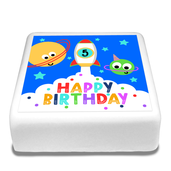 Birthday bright rocket & space for boys custom text Sponge Cake Topper