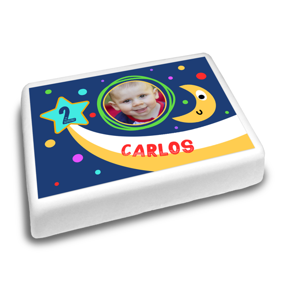 Birthday space, moon and stars frame for boys photo upload Sponge Cake Topper