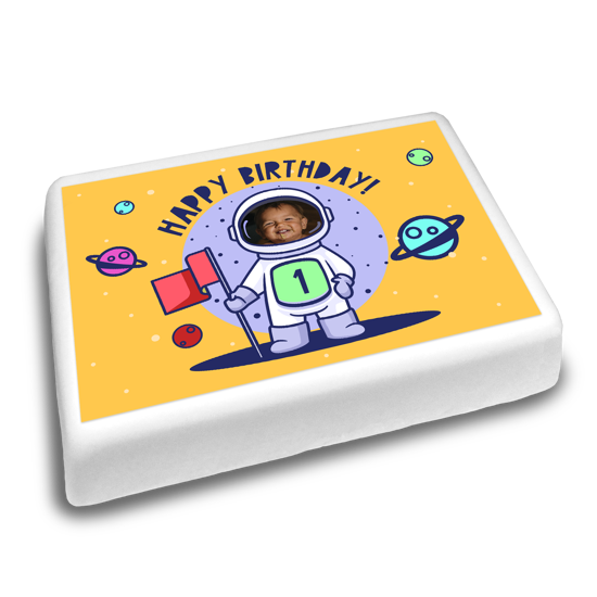 Shoot into outer space with our birthday space moon astronaut frame topper! Surprise your little one with their face on this epic astronaut topper. Customise this design by uploading your own photo and add their age to the astronaut suit for a extra personal finishing touch.
