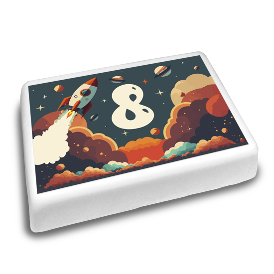 Shoot into space with our birthday retro graphics space rockets and planets topper! Add some 80's flair to your space-themed celebration with these retro planet illustrations! Customise this design by adding your age with our handy topper editor.