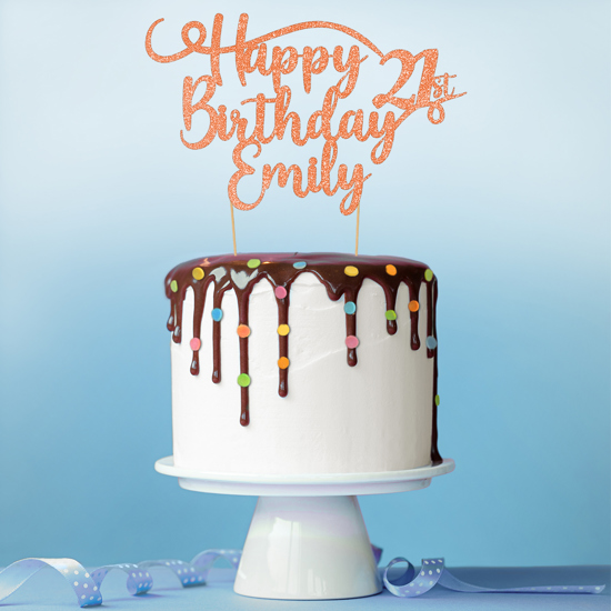 Happy birthday custom age & name best selling swirl Glitter Topper