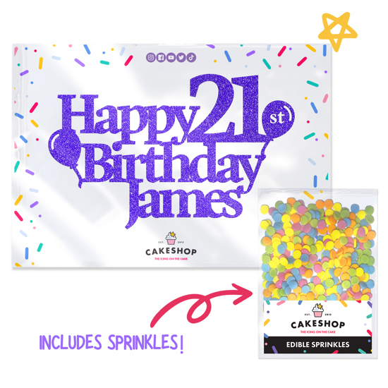 Make their birthday memorable with our happy birthday balloon topper! Easily customise with their name and any age! Find their favourite colour with our 14 glitter shades. This balloon design in the perfect personalised finishing touch for their birthday party! Cakeshop glitter toppers come with a 25g pack of edible sprinkles to elevate your bake even further, see 'What's Included' section below for full details and ingredients.