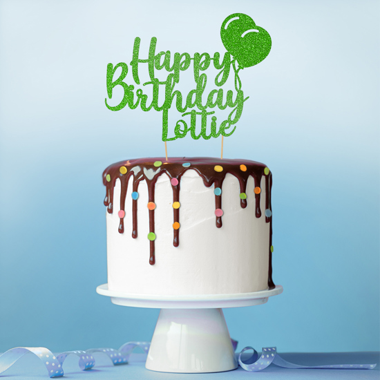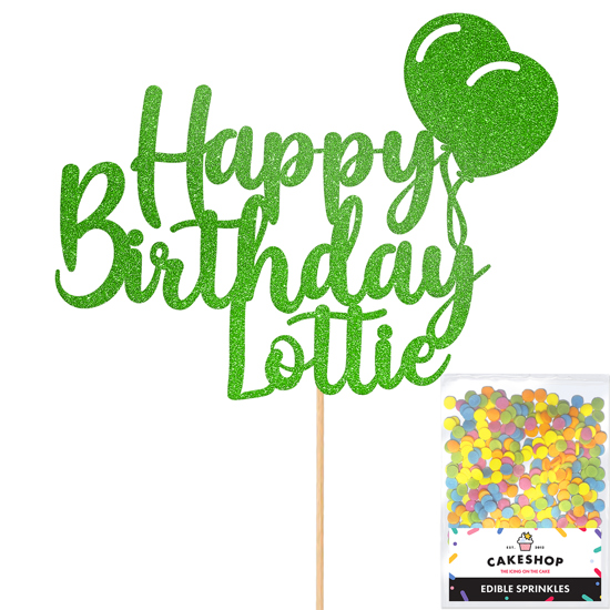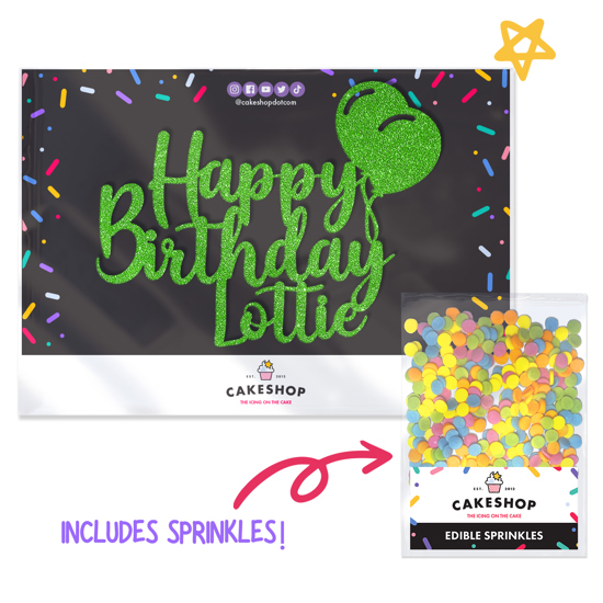 This personalised classic birthday balloon glitter topper design is the perfect way to make them feel special on their birthday. Our double-sided glitter toppers can be customised with any name and are available in 14 gorgeous glitter shades! The glitter balloons make this design ideal for birthday parties. Cakeshop glitter toppers come with a 25g pack of edible sprinkles to elevate your bake even further, see 'What's Included' section below for full details and ingredients.