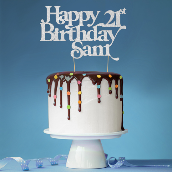 Swirl cursive text happy birthday custom age & name Glitter Topper