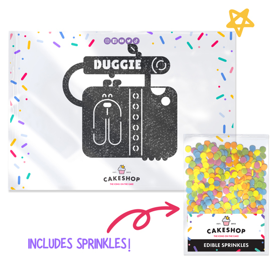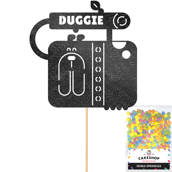 Have a paw-some birthday with our cute cartoon dog birthday custom glitter topper, customise with any name and pick from our selection of 14 glitter shades! Woof! Cakeshop glitter toppers come with a 25g pack of edible sprinkles to elevate your bake even further, see 'What's Included' section below for full details and ingredients.