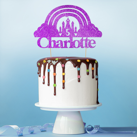 Rainbow magical kingdom birthday princess custom age & name Glitter Topper