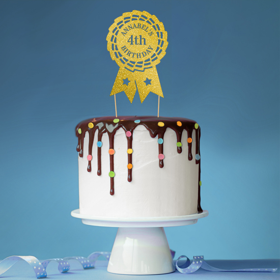 Horse riding rosette award birthday custom name & age Glitter Topper